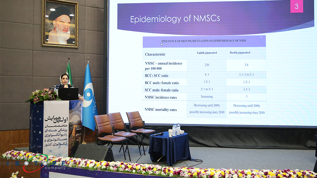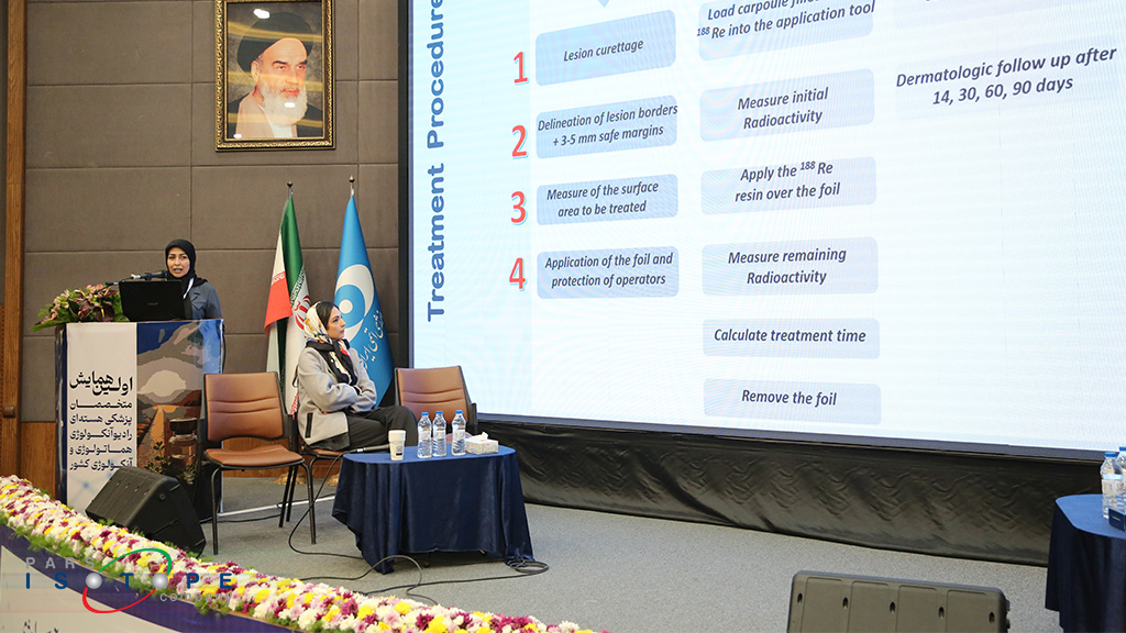 The final panel, dedicated to novel treatments for non-melanoma skin cancer, was held with two lectures. First, Dr. Nasrin Raeisi, a nuclear medicine specialist, introduced the Rhenium-188 topical cream and presented treated cases with it. She introduced Rhenium-188 cream as a novel treatment method worldwide, which, thanks to the efforts of Pars Isotope specialists as the second producer country globally, is now available in nuclear medicine centers for the treatment of non-melanoma skin cancer. In addition, Dr. Bita Fam, a researcher at the Skin Research Center of Shahid Beheshti University of Medical Sciences, described other novel methods for treating non-melanoma skin cancer.